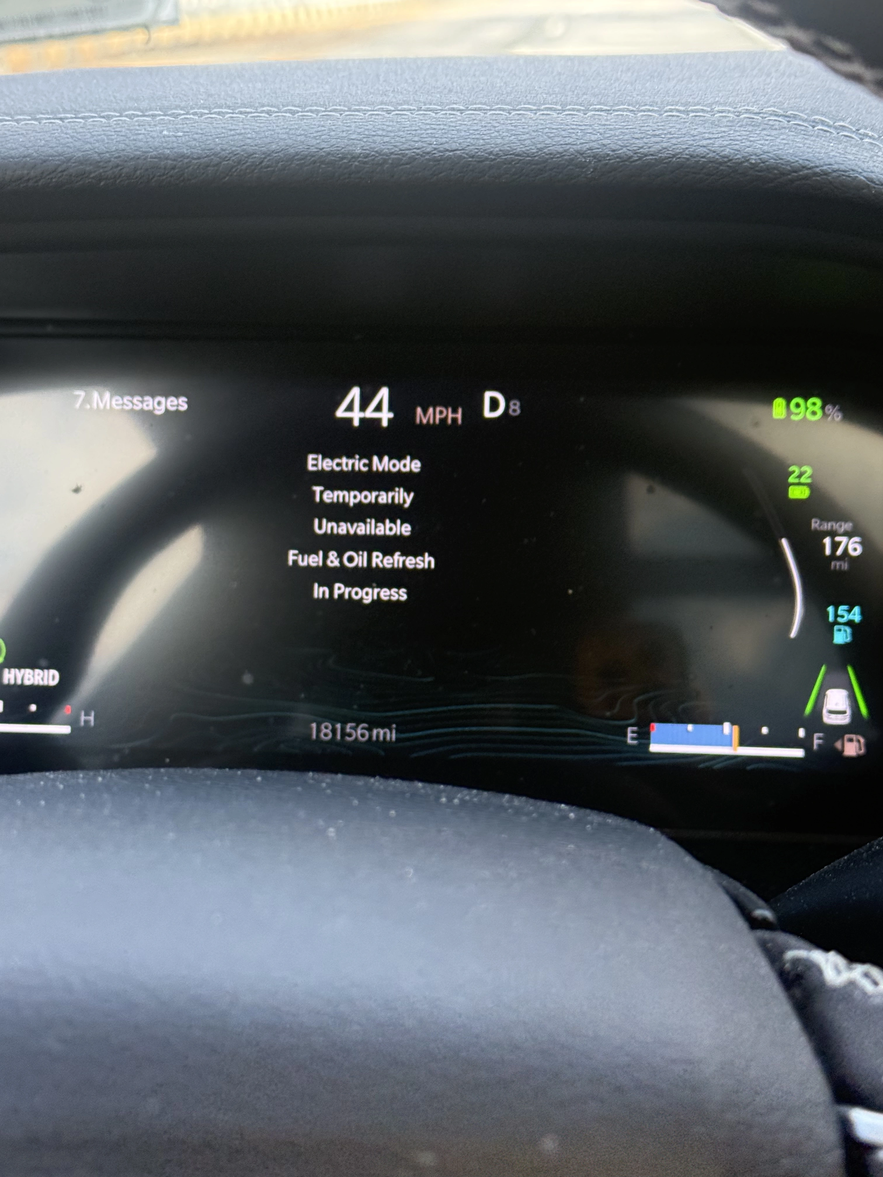 Then I noticed that my car was acting funny with something called Fuel and Oil Refresh Mode. It seems like I’m always in that mode, and it’s getting on my nerves. I know why it’s happening, but I wish it didn’t happen so often. Gas shouldn’t “go bad.”